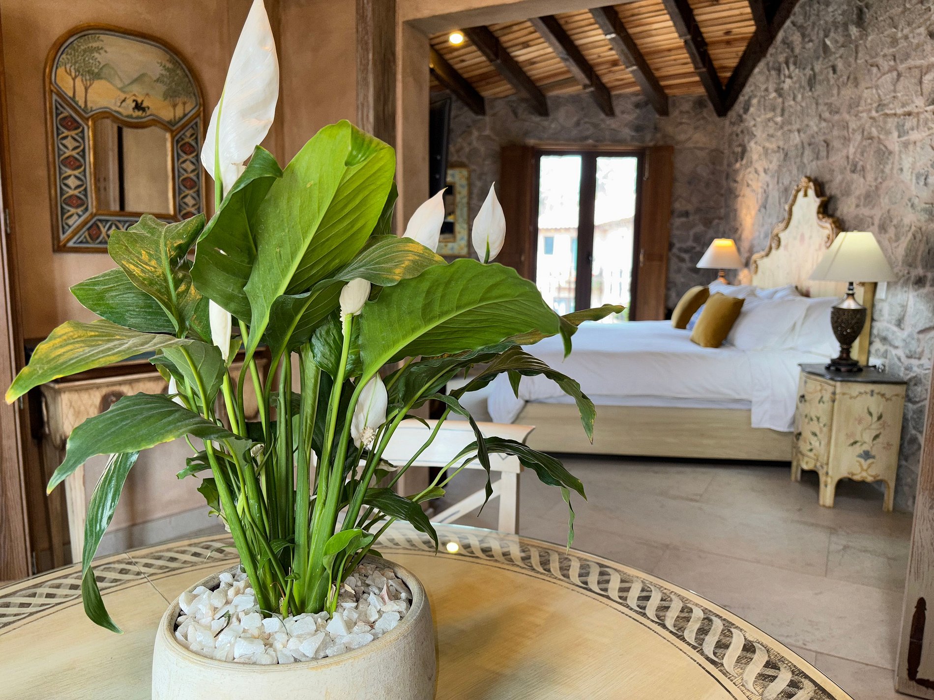 ● Cama King Size: Pintada a mano por artesanos mexicanos, combinando comodidad y estilo.