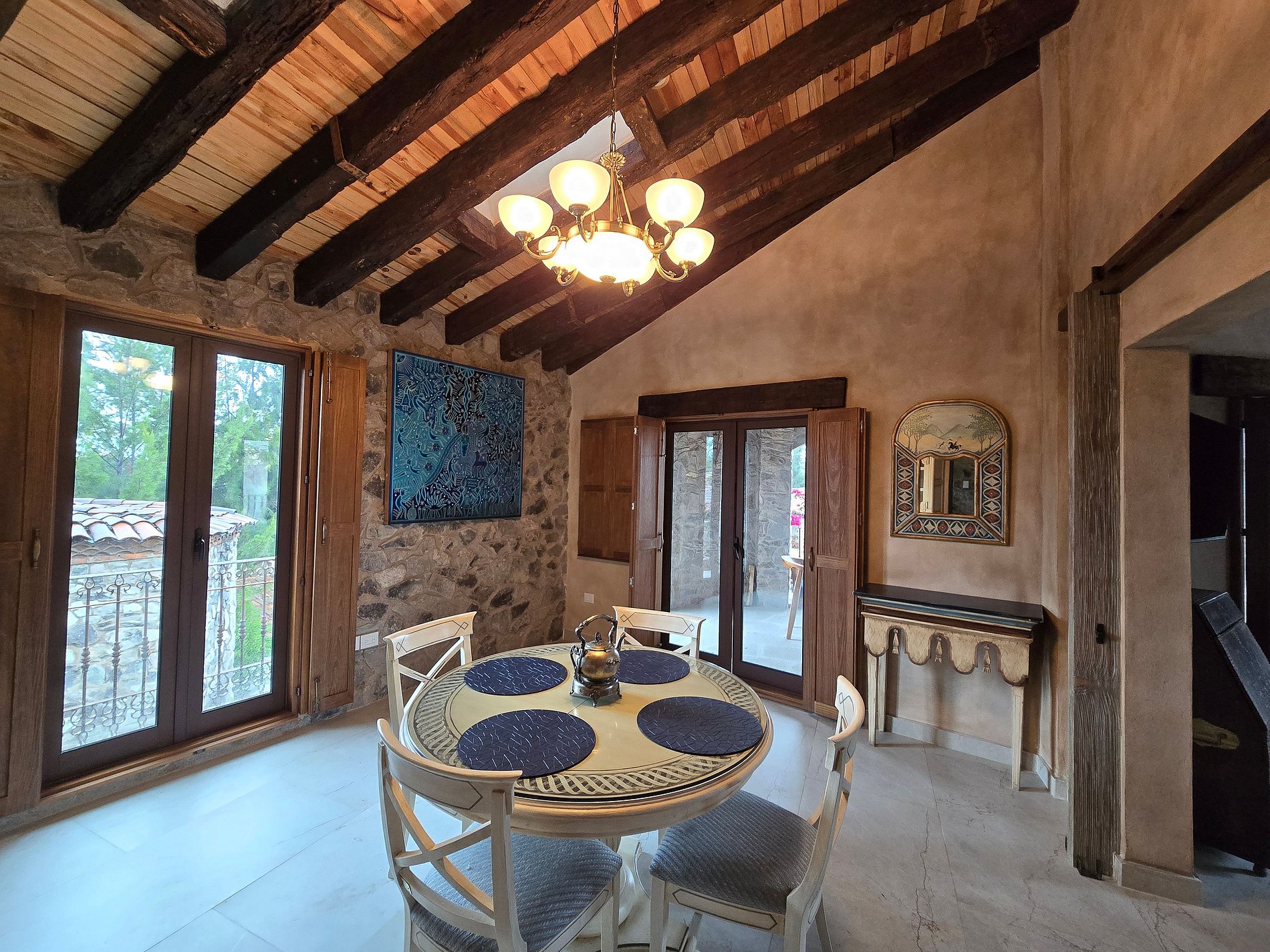 Creo que hace falta calefactores , tiene una terraza en Balcón con una mesa muy bonita para disfrutar alimentos, pero con el frío no se disfruta plenamente.